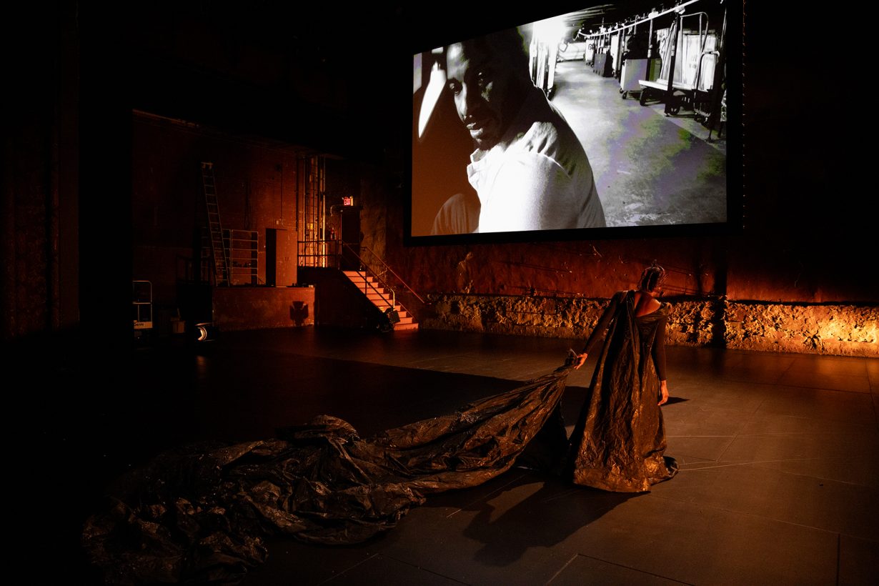 SH このパフォーマンスは、語り手がグローバルな資本主義システムのなかでどのように形づくられてきたかを考えるところから始まります。世界は一つのシステムであり、私たちの歴史は横断的につながっています。アメリカ帝国の影響力は、ここで起きたことが世界中に波及することを意味します。人種化、反黒人主義、植民地主義の構造はグローバルであり、それらを維持しようとする仕組みは互いに学び合っています。たとえば、ナチスはアメリカのモデルをもとに人種法を構築しました。ヒトラーはアメリカの人種秩序を称賛していたのです。「世界の終わりに存在するとはどういうことか」という問いは、共有されたものです。私たちは地球上のそれぞれの場所で、意識ある存在として、土地や時間をどのように生きるのかについてさまざまな考えを抱きながら、それぞれの形でこの問いと向き合っているのです。