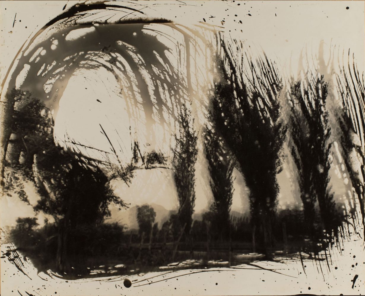 たとえば《ポプラ》(1957年頃)という写真では、分岐するポプラの枝先の形態とランダムに枝分かれする現像液の飛沫が視覚的に識別不可能なまま結びついている。それは、フォルムがアンフォルムによって侵食され、たがいの差異が蒸発することだ。彼のいう「別の世界」とは、イメージと物質、具体物と現象とが交錯することで現れる、このような次元の生成と関わる。
