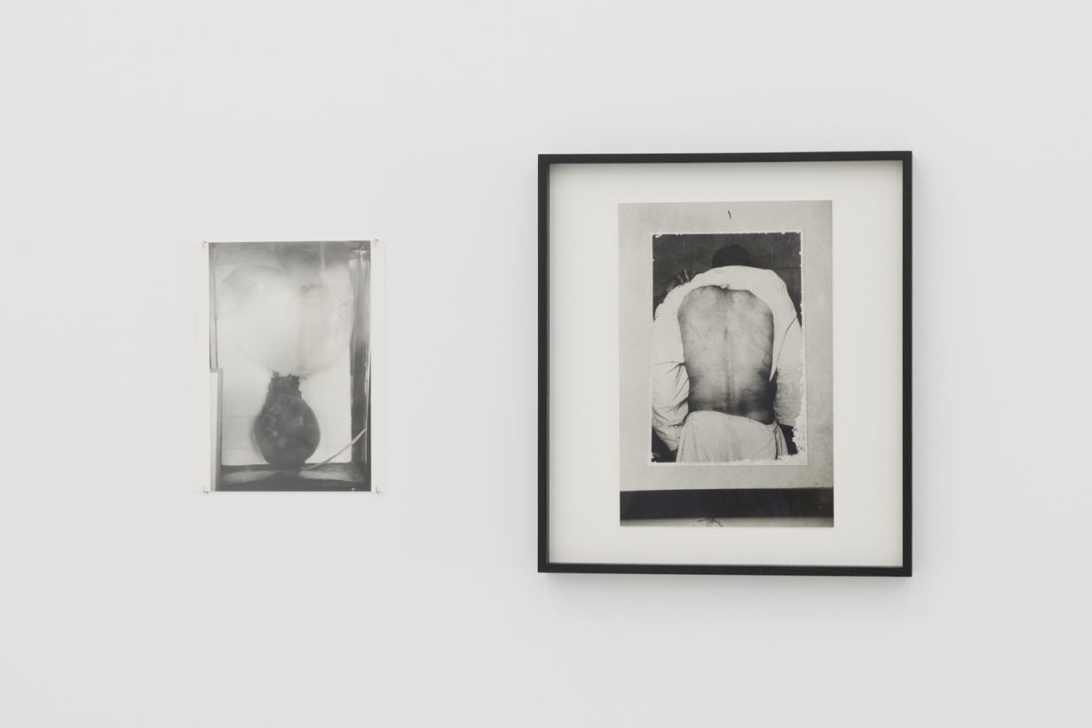 アイルランドに生まれ、イギリスやアメリカで教育を受け、出自のエジプトを含む複数の地域を横断してきた彼の移動的な経験もまた、特定の文化的・歴史的な位置に回収されない視点を形成している。そこで出来事は単一の現在として固定されることなく、複数の時間の層を引きずりながら、主体や起源への帰属を宙吊りにする。カイロの博物館で撮影された写真作品《three chambers》に見られる有機的な形態や、《braces II》が想起させる身体の残像、布に覆われた物体を写し出した《duvet》は、いずれも出来事そのものではなく、過ぎ去った後の異なる時間における、いわば事後的に与えられた生としての像だ。その荒くざらついた像の在り方は、セルパスが扱う亡霊的な物質性や気配ともどこかで響き合うが、グレイスのそれは空間的な配置ではなく、イメージの内部において遅延として作動する。